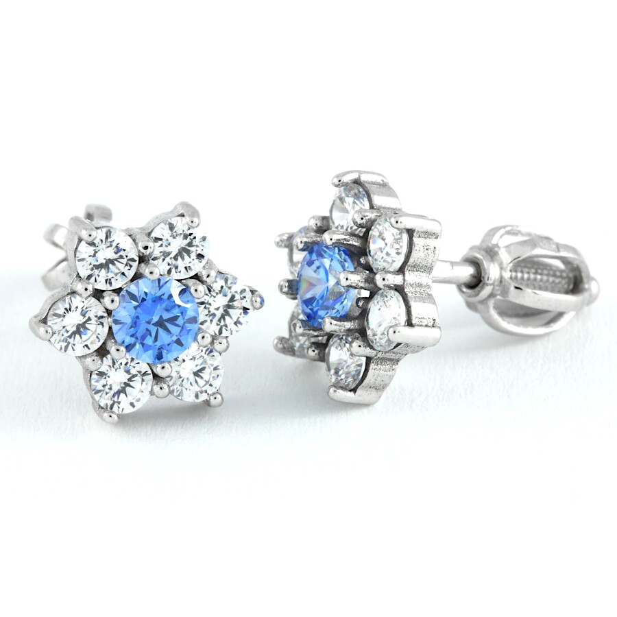 Náušnice bílé zlato Hvězdička střed modrý zirkon