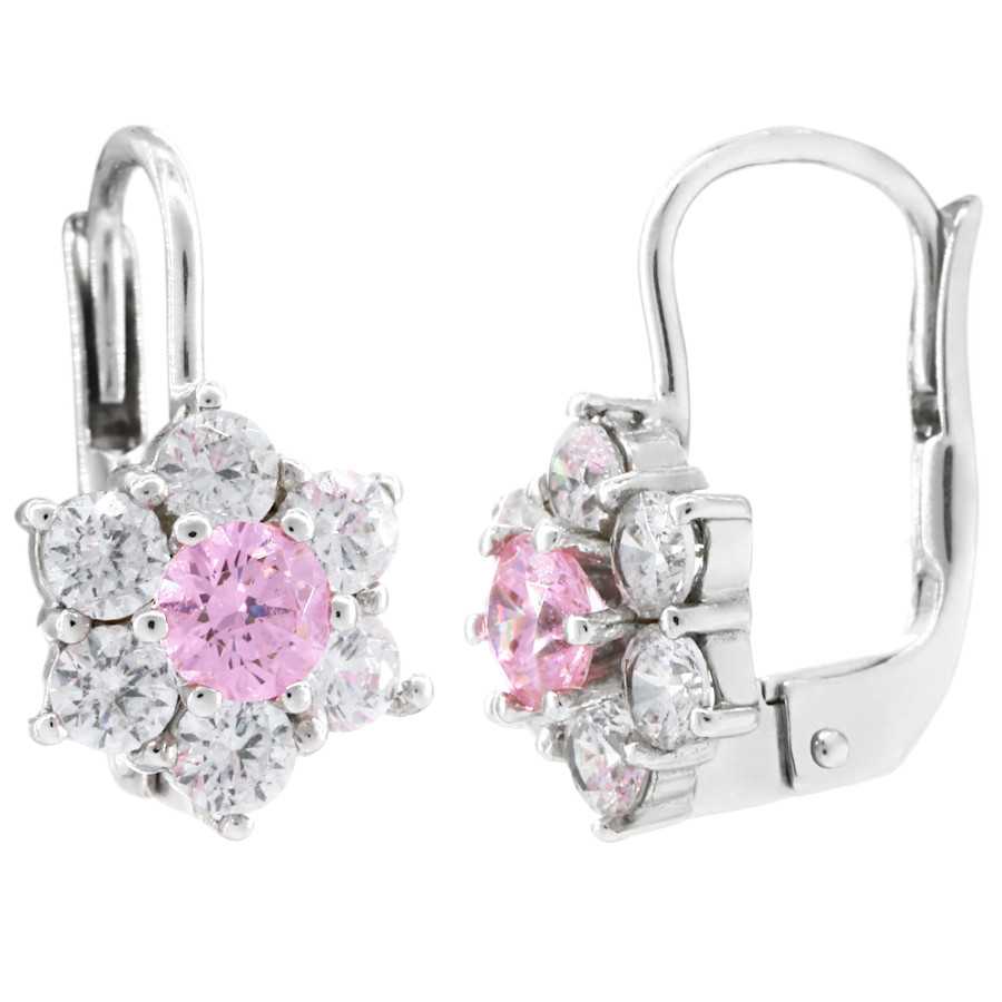 Náušnice bílé zlato Hvězdička střed růžový zirkon
