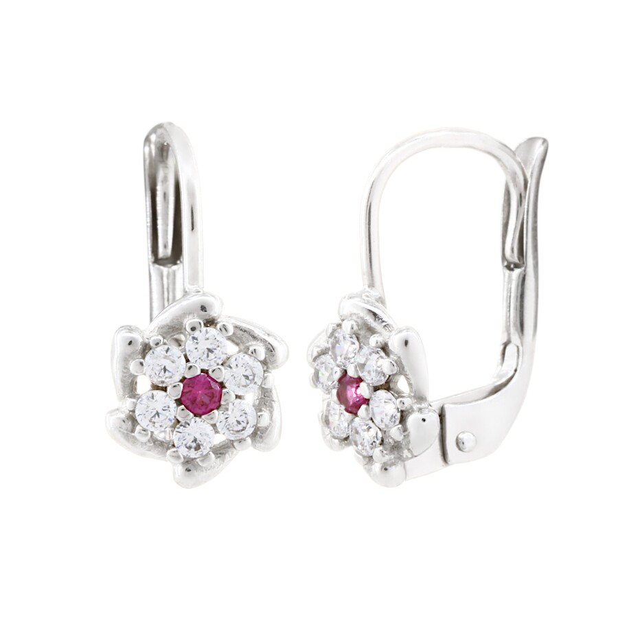 Náušnice bílé zlato Hvězdičky střed červený zirkon