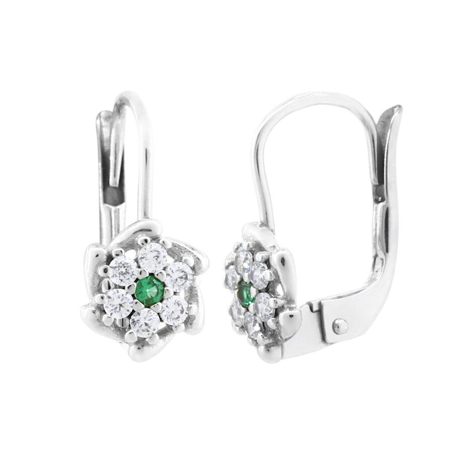 Náušnice bílé zlato Hvězdičky střed zelený zirkon