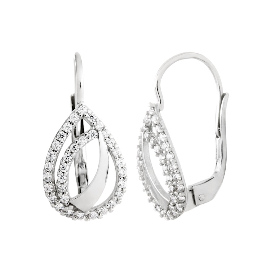 Náušnice bílé zlato Kapka se zirkony