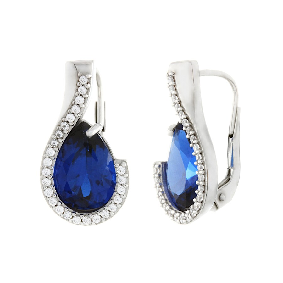 Náušnice bílé zlato Kapka spinel se zirkony ze soupravy