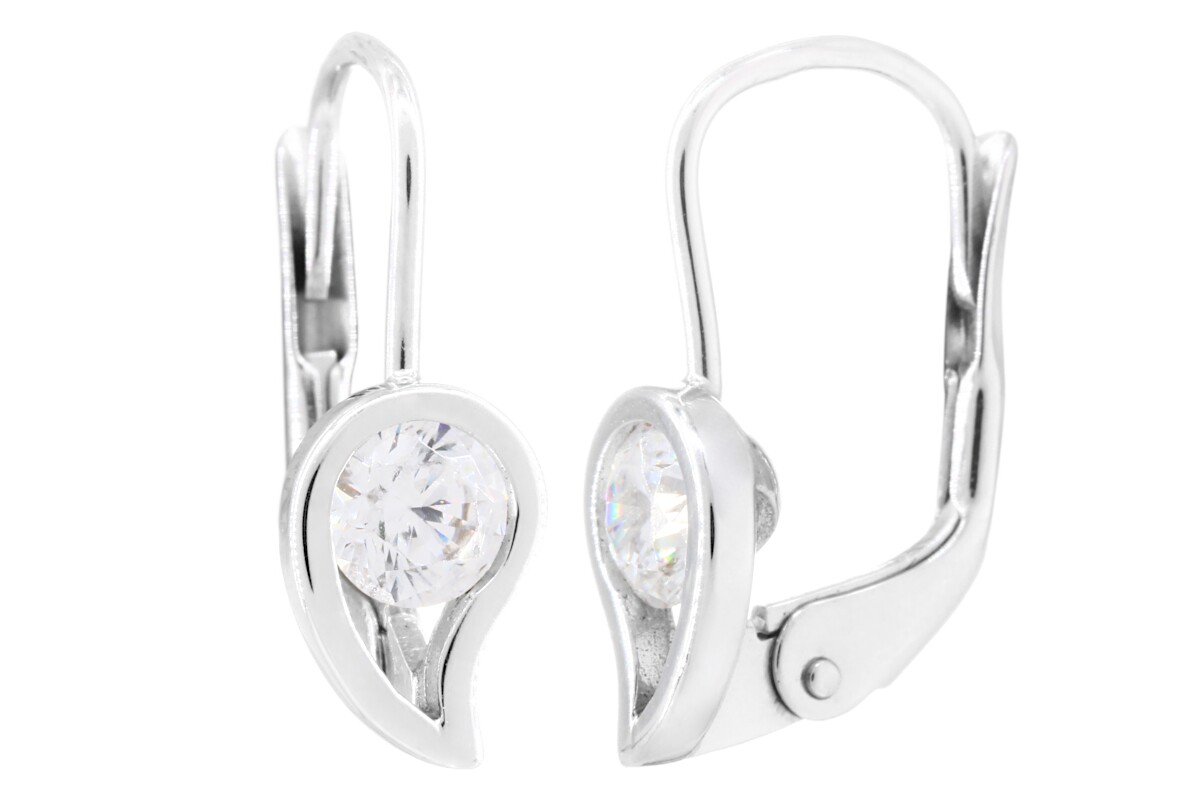 Náušnice bílé zlato Kapka střed bílý zirkon