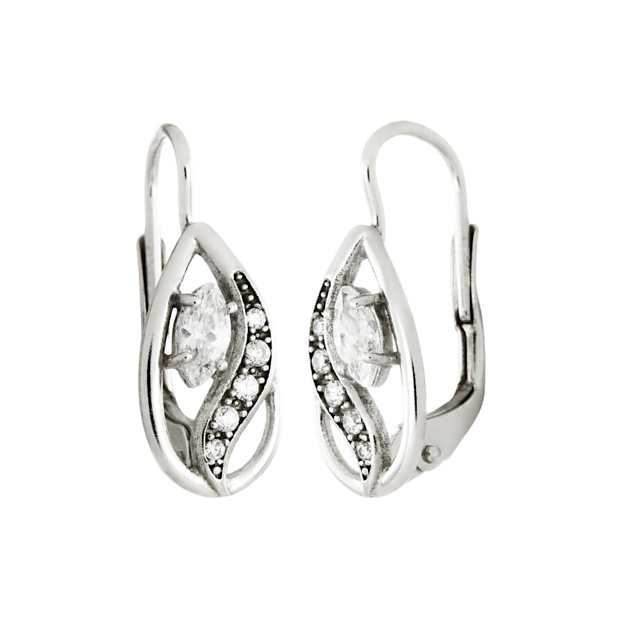 Náušnice bílé zlato Kapka střed bílý zirkon
