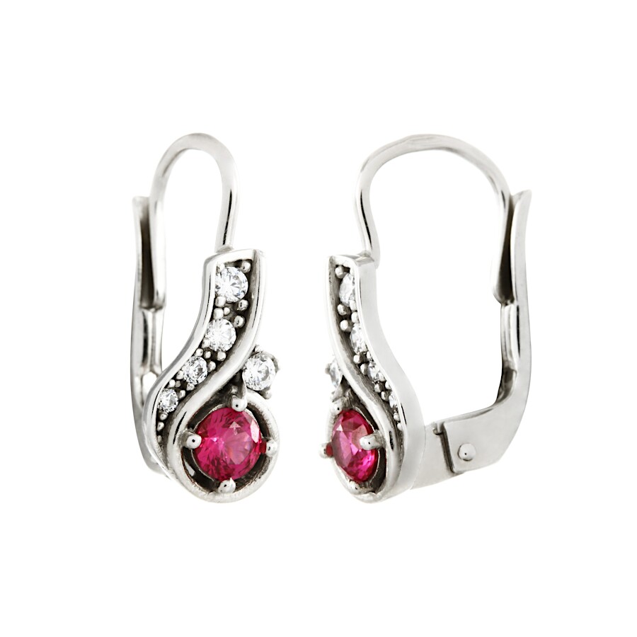 Náušnice bílé zlato Kapka střed červený zirkon