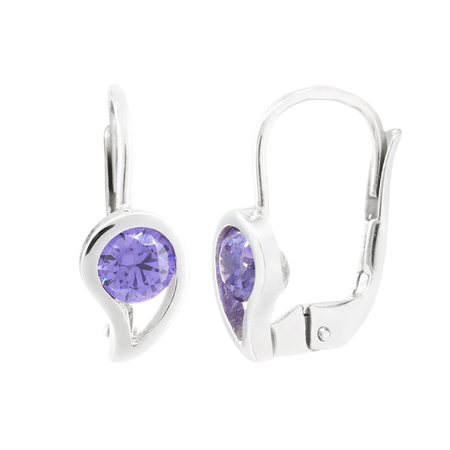 Náušnice bílé zlato Kapka střed fialový zirkon