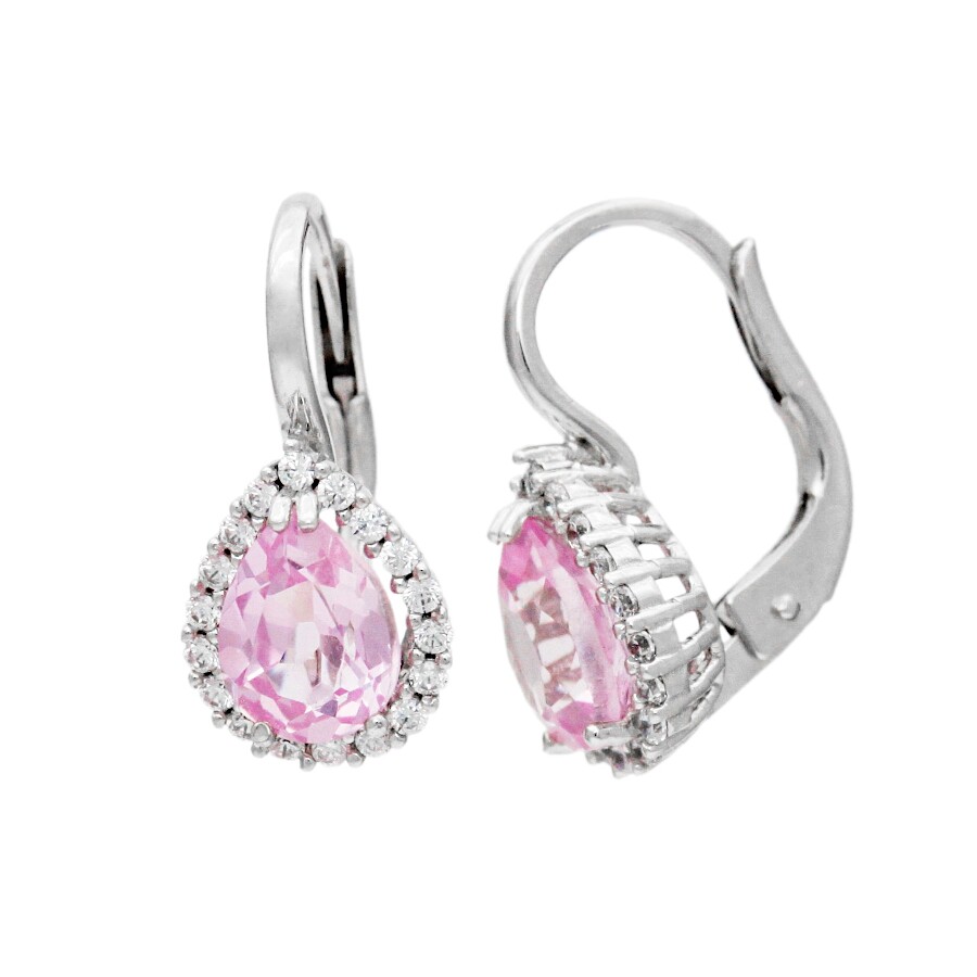 Náušnice bílé zlato Kapka střed růžový zirkon