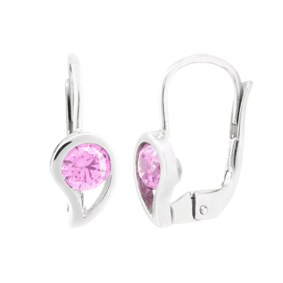 Náušnice bílé zlato Kapka střed růžový zirkon