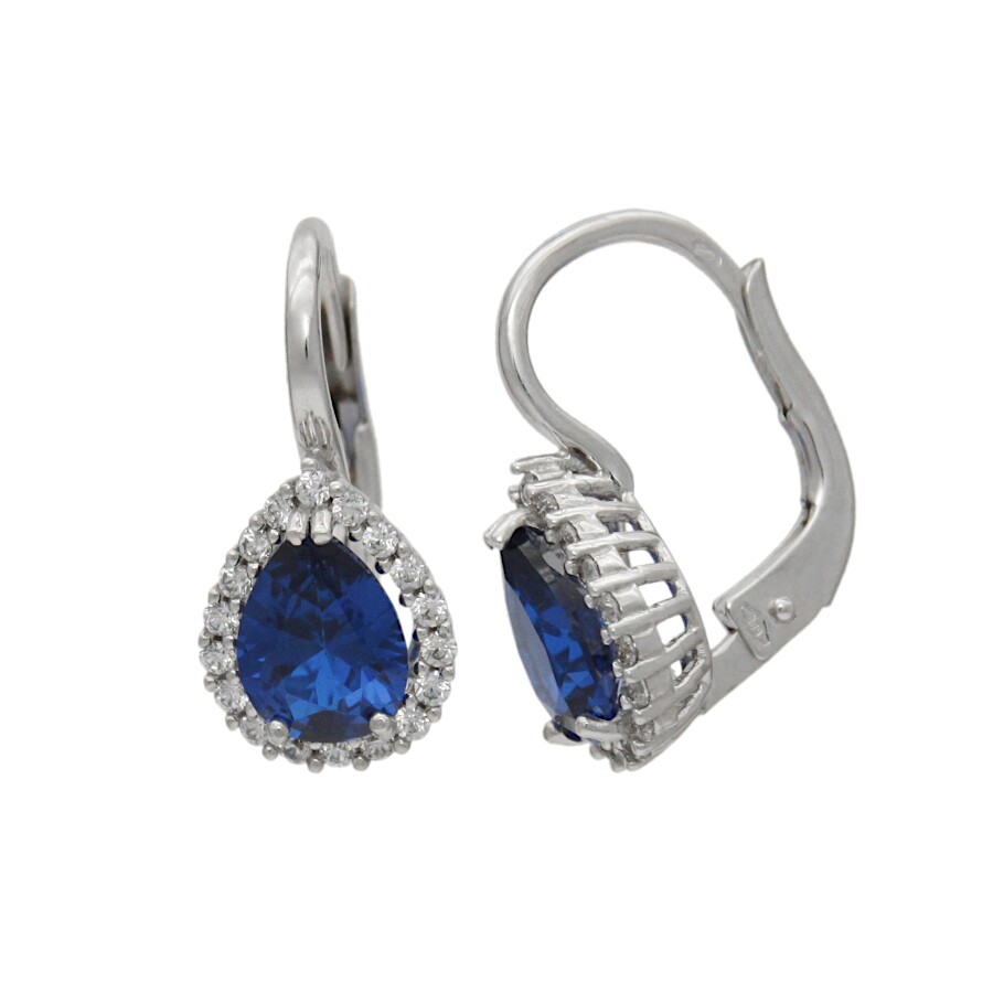 Náušnice bílé zlato Kapka střed tmavě modrý zirkon
