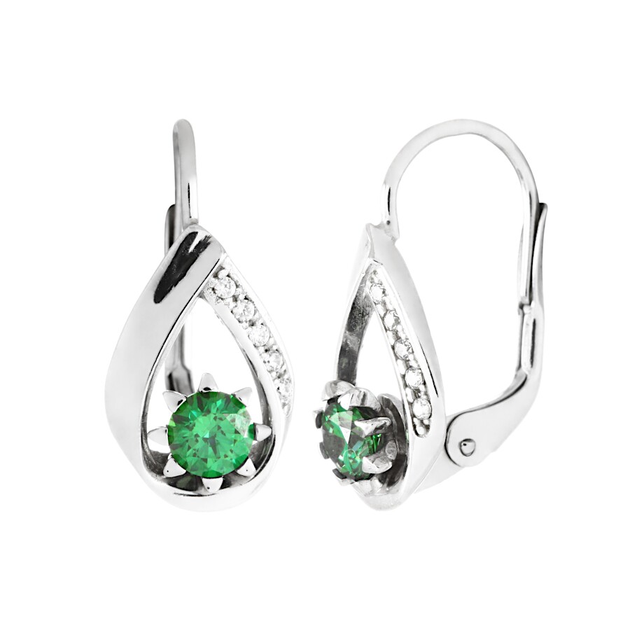 Náušnice bílé zlato Kapka střed zelený zirkon