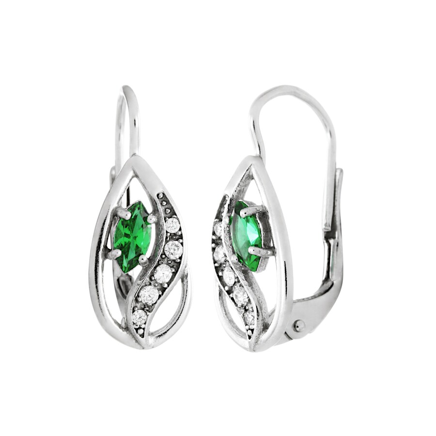 Náušnice bílé zlato Kapka střed zelený zirkon