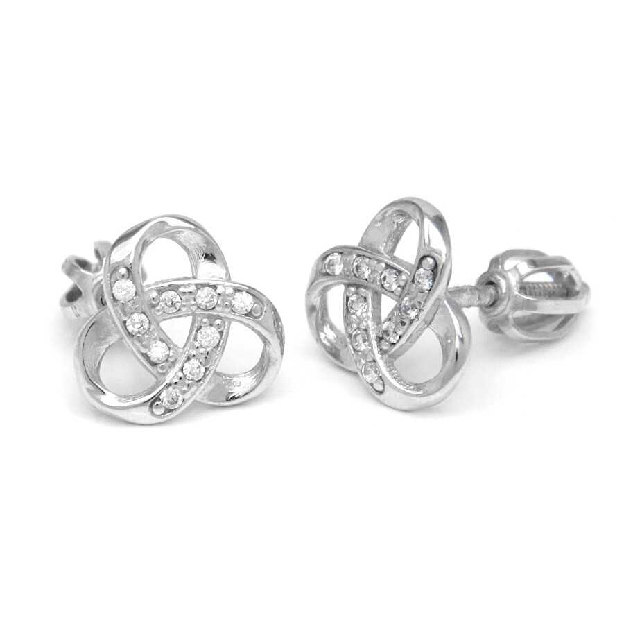 Náušnice bílé zlato Keltský uzel se zirkony