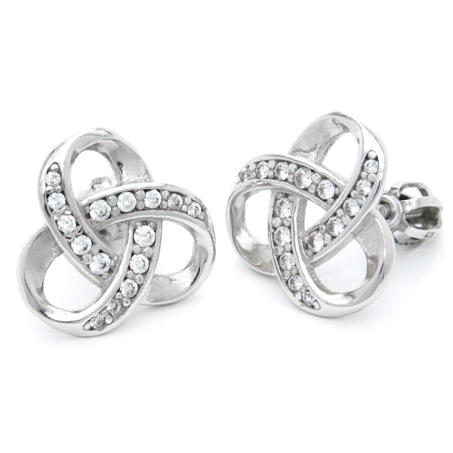 Náušnice bílé zlato Keltský uzel velký se zirkony