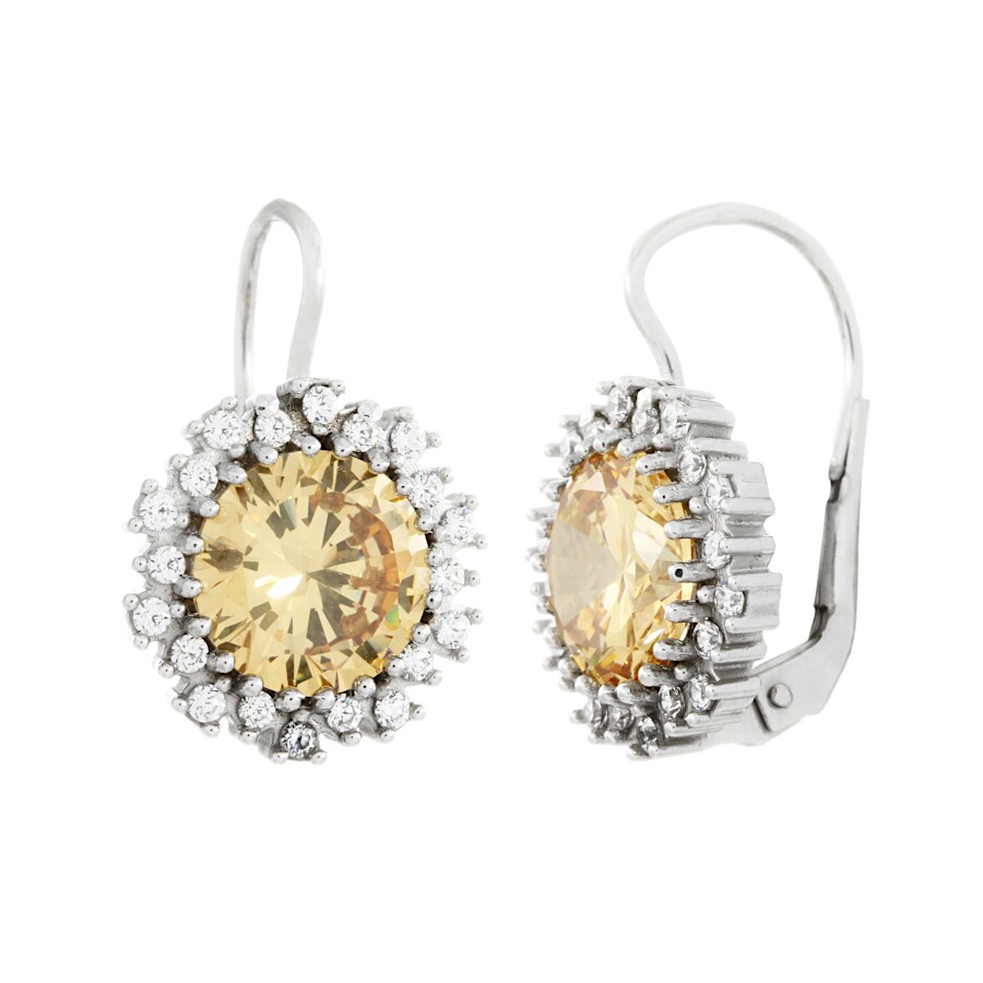 Náušnice bílé zlato Kolečko bílé zirkony a střed champagne zirkon ze soupravy