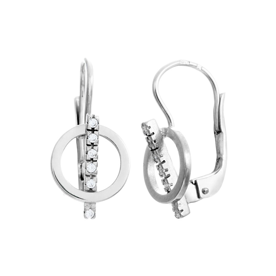 Náušnice bílé zlato Kolečko s tyčinkou se zirkony