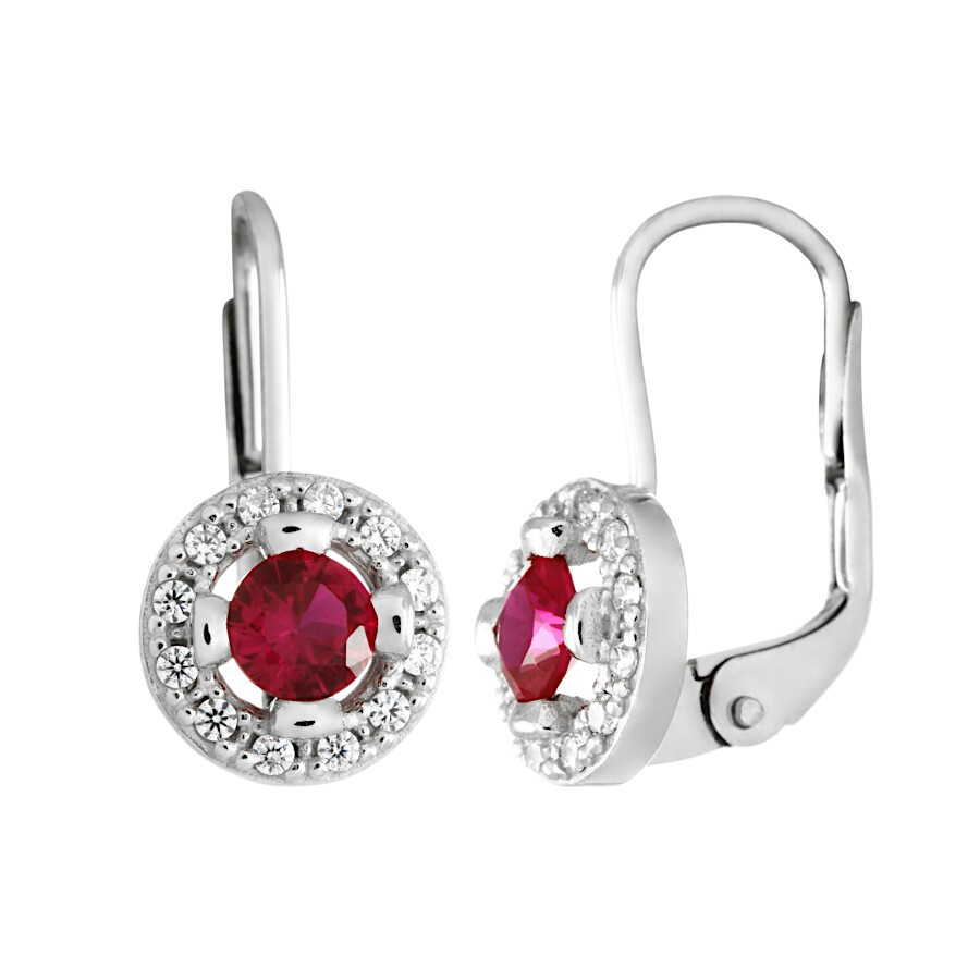 Náušnice bílé zlato Kolečko střed červený zirkon