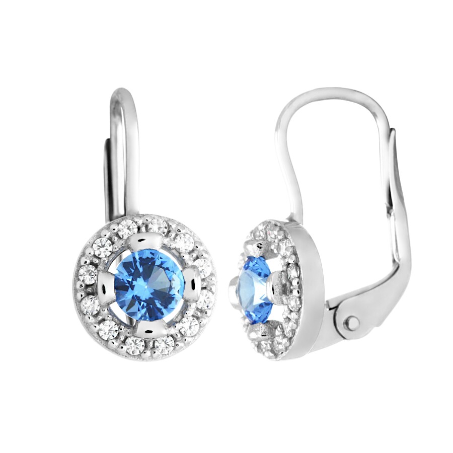 Náušnice bílé zlato Kolečko střed modrý zirkon