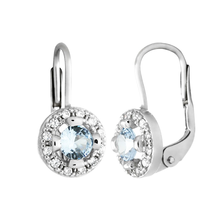 Náušnice bílé zlato Kolečko střed světle modrý zirkon