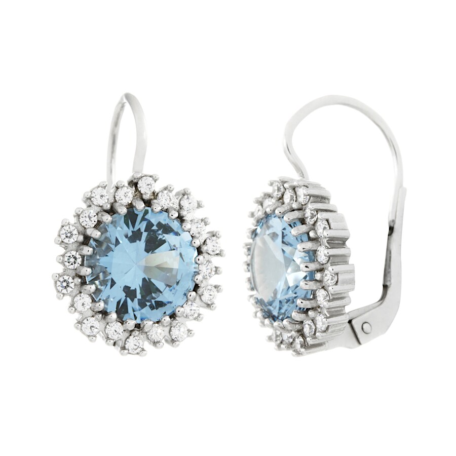 Náušnice bílé zlato Kolečko střed syntetický akvamarín se zirkony