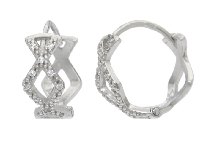 Náušnice bílé zlato Kruhy se zirkony 14 mm SL-49207