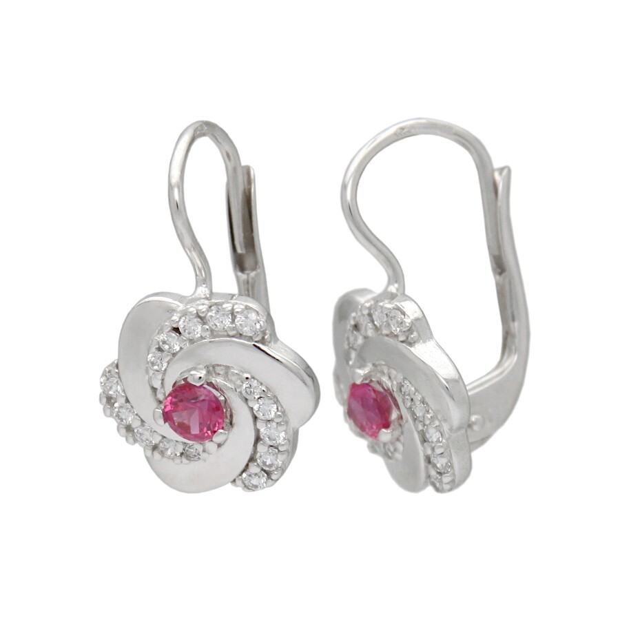 Náušnice bílé zlato Květina se zirkony SL-73207c