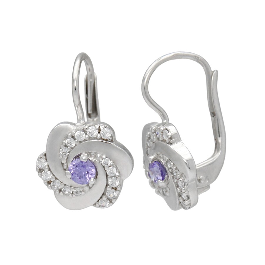Náušnice bílé zlato Květina se zirkony SL-73207f