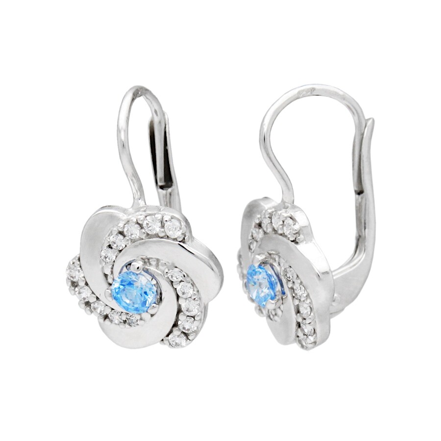 Náušnice bílé zlato Květina se zirkony SL-73207m