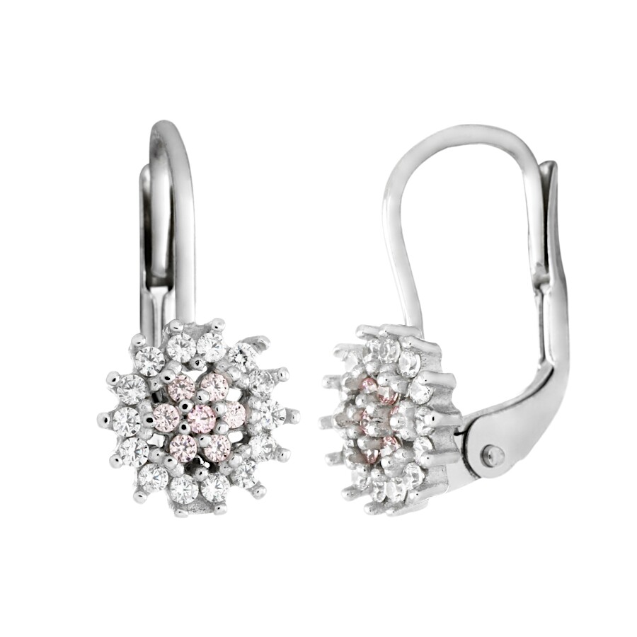 Náušnice bílé zlato Květinka střed růžové zirkony