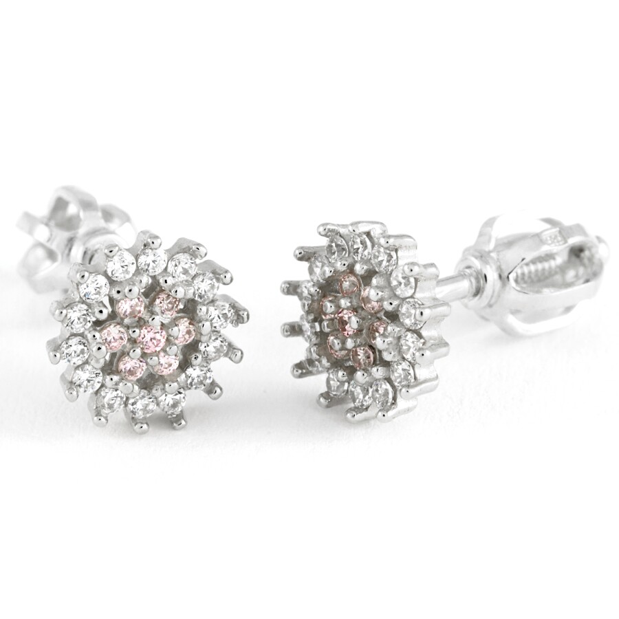 Náušnice bílé zlato Květinka střed růžové zirkony