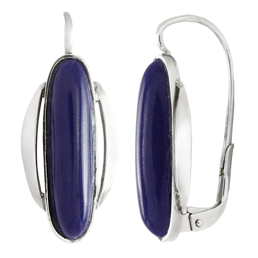 Náušnice bílé zlato Lapis lazuli - ruční práce