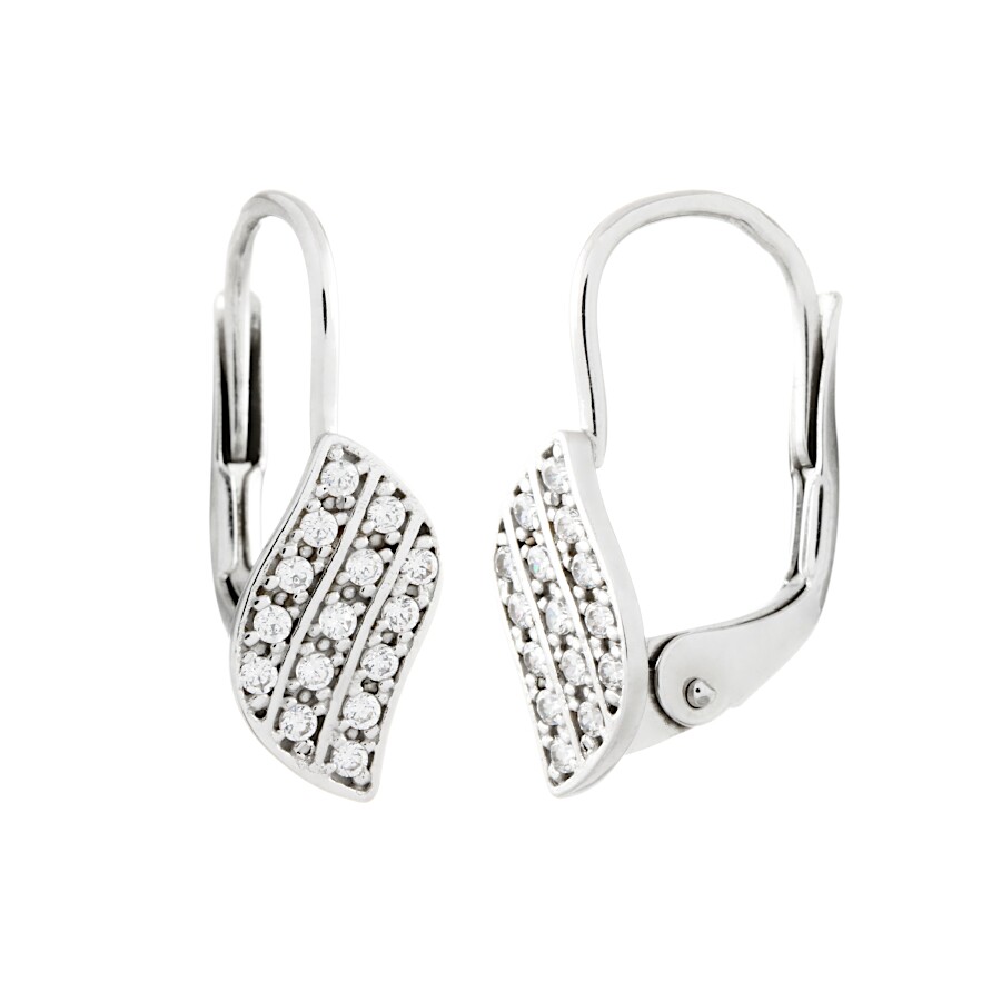 Náušnice bílé zlato List se zirkony