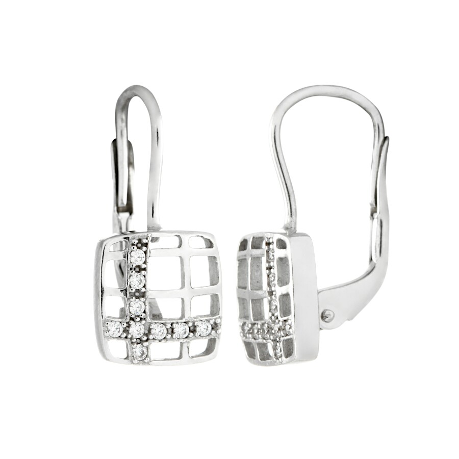 Náušnice bílé zlato Mřížka se zirkony