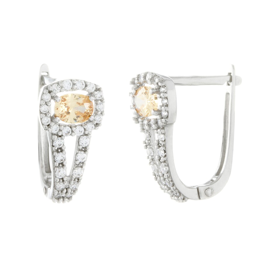 Náušnice bílé zlato Obdelníček se zirkony ze soupravy SL-77407ch