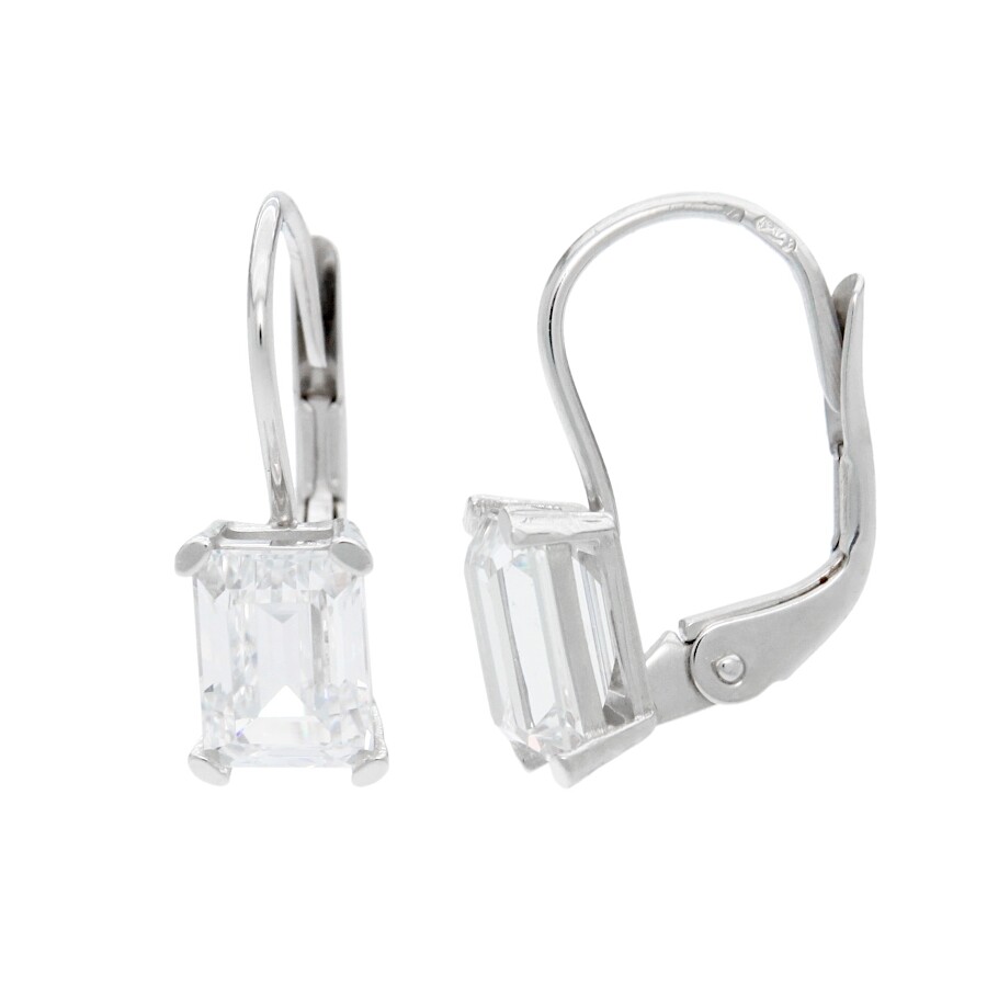 Náušnice bílé zlato Obdelník se zirkonem SL-89207b