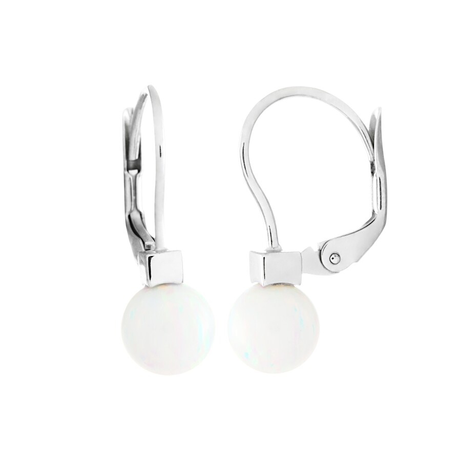 Náušnice bílé zlato Opál bílý syntetický