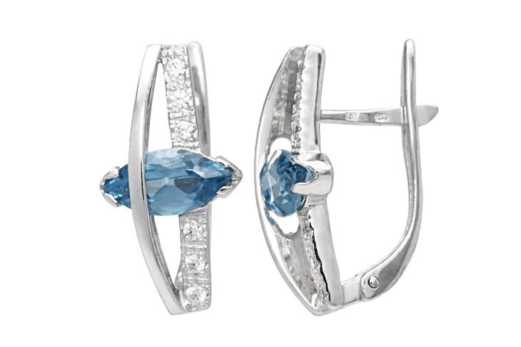 Náušnice bílé zlato Ovál akvamarín syntetický se zirkony