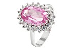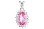 Náušnice bílé zlato Ovál bílé zirkony a střed růžový zirkon velký