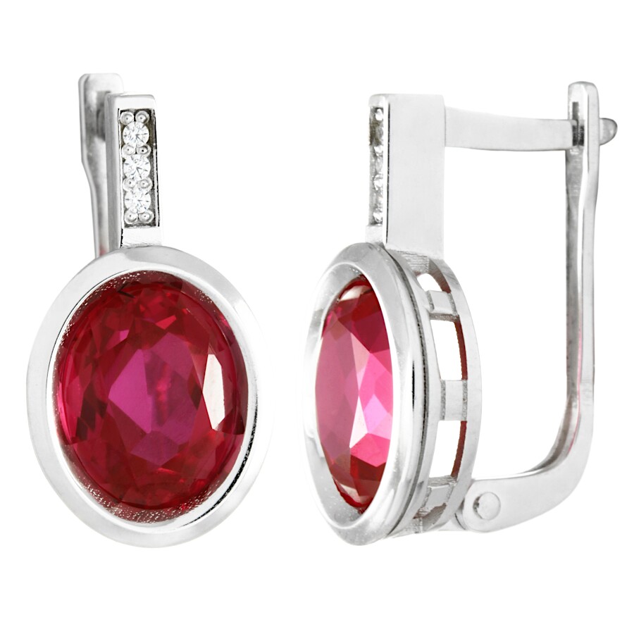 Náušnice bílé zlato Ovál rubín syntetický