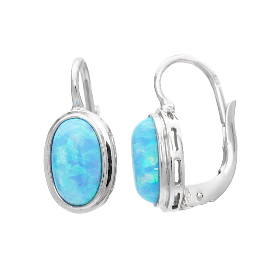 Náušnice bílé zlato Ovál s modrým opálem ze soupravy BU-96-0071mo