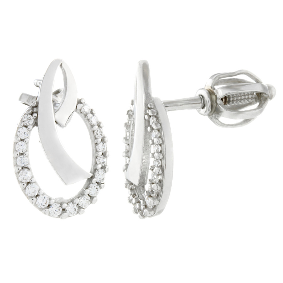 Náušnice bílé zlato Ovál s vlnkou a zirkony