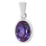 Náušnice bílé zlato Ovál se syntetickým ametystem v hladké obrubě - ruční práce