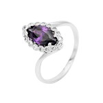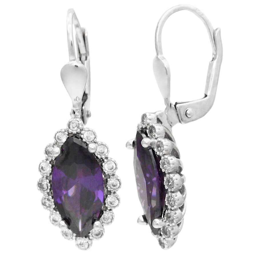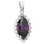 Náušnice bílé zlato Ovál špičatý se syntetickým ametystem a zirkony
