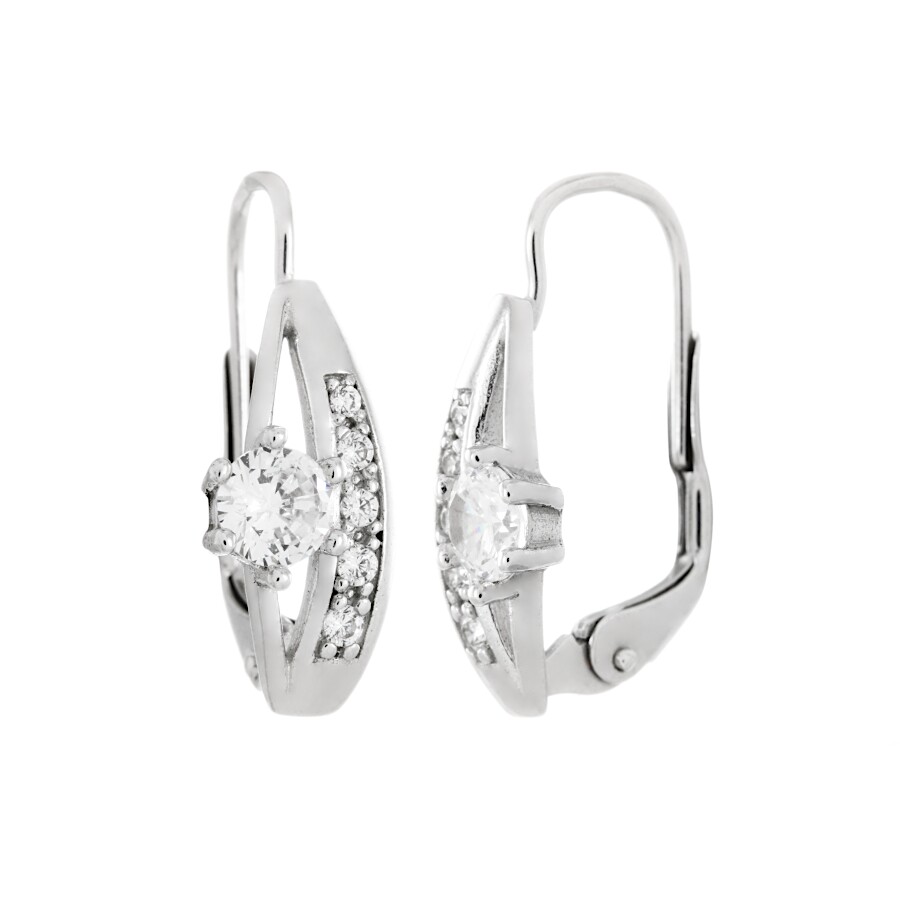 Náušnice bílé zlato Ovál špičatý střed bílý zirkon