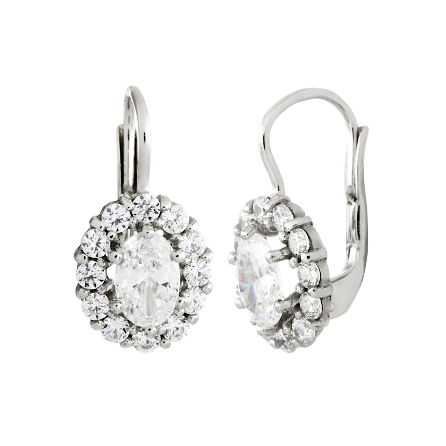 Náušnice bílé zlato Ovál střed bílý zirkon