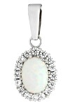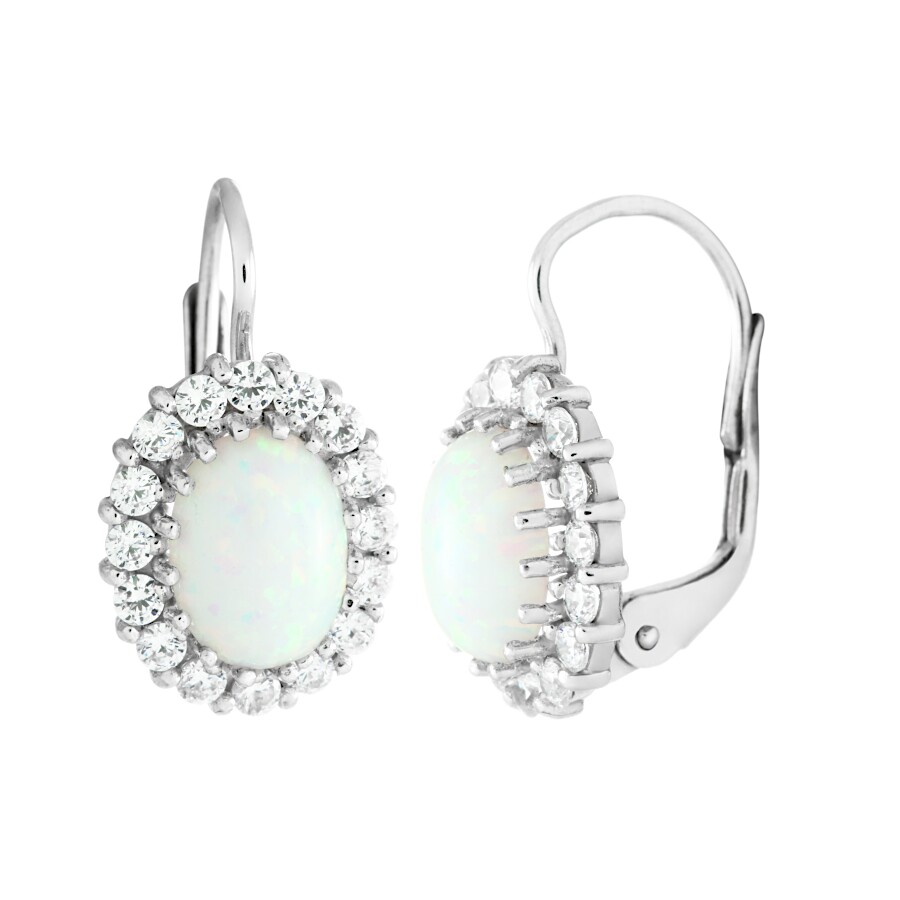 Náušnice bílé zlato Ovál střed opál bílý syntetický