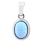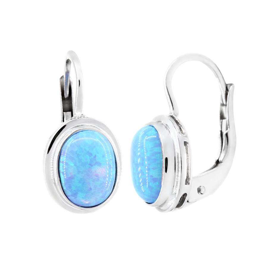 Náušnice bílé zlato Ovál střed syntetický opál modrý