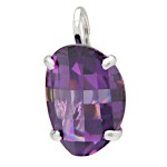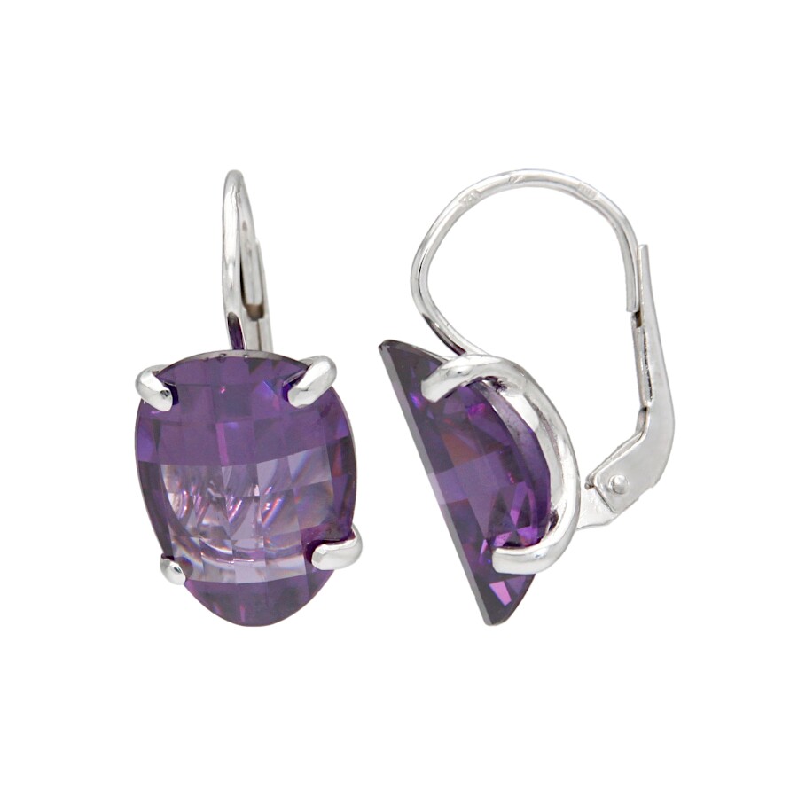 Náušnice bílé zlato Ovál velký se syntetickým ametystem
