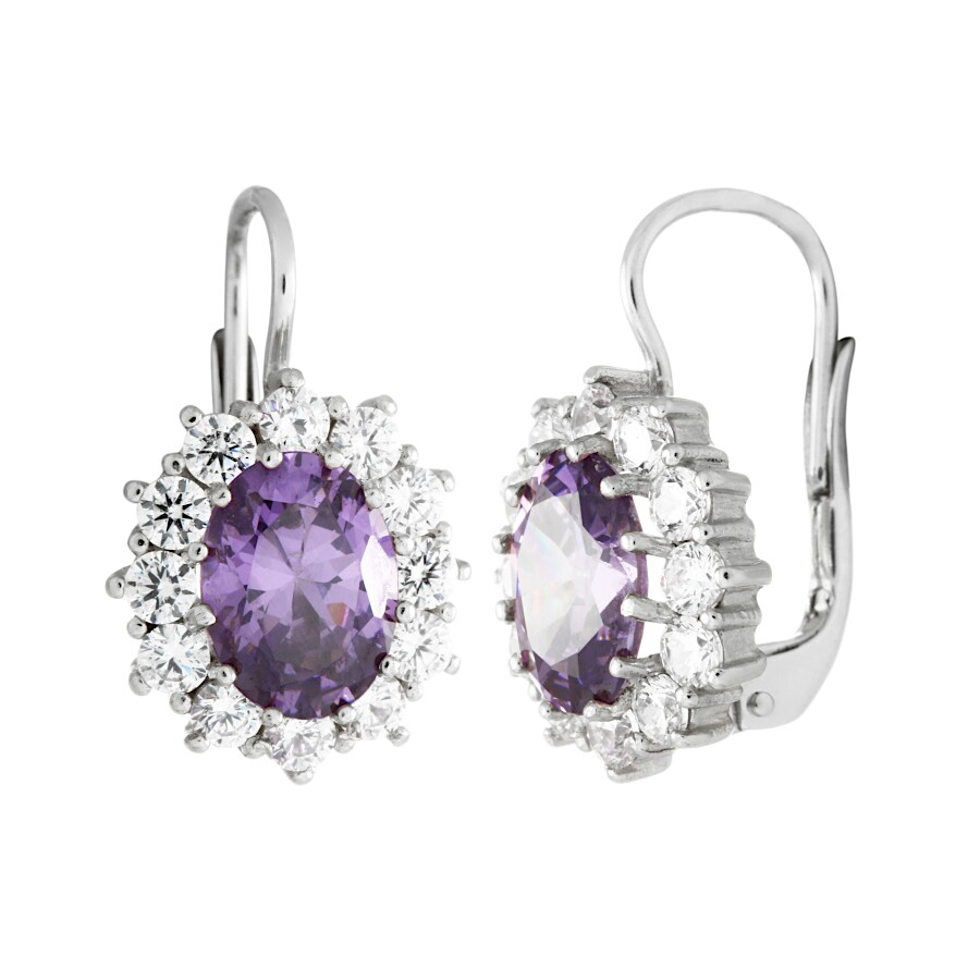 Náušnice bílé zlato Ovál velký střed fialový zirkon
