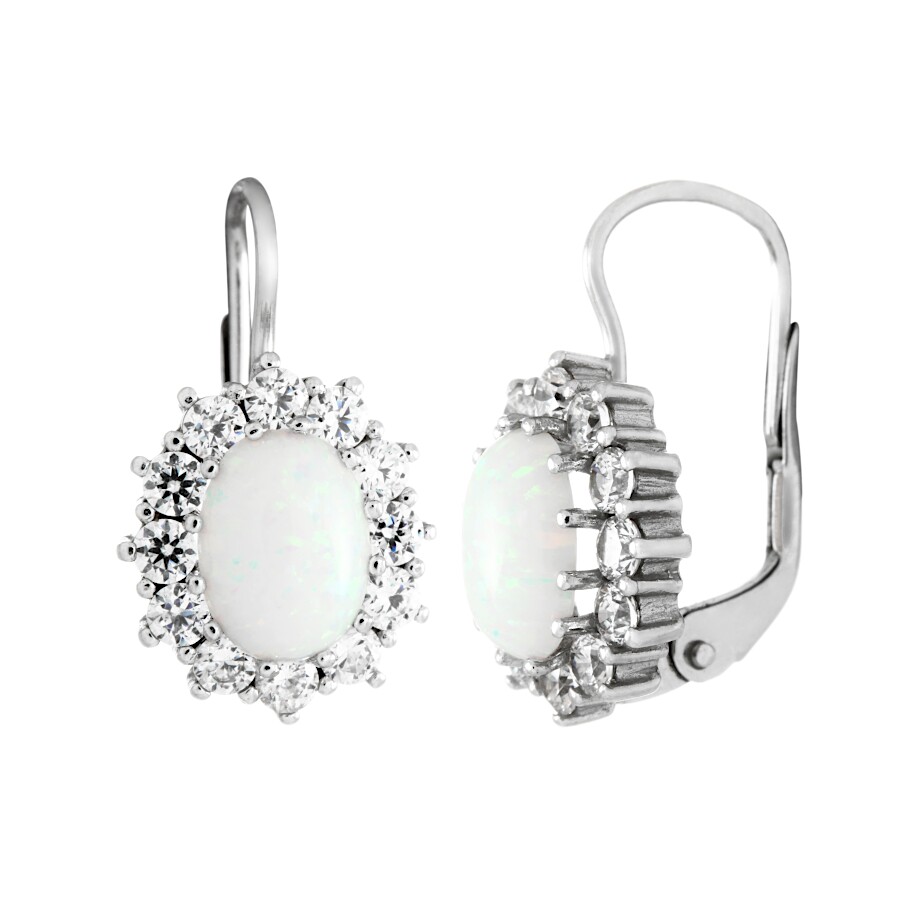 Náušnice bílé zlato Ovál velký střed opál bílý syntetický