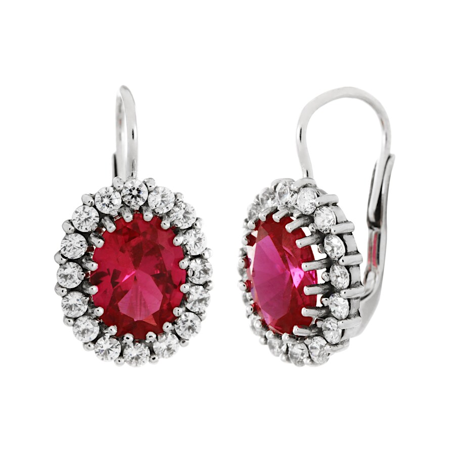 Náušnice bílé zlato Ovál větší zirkon červený